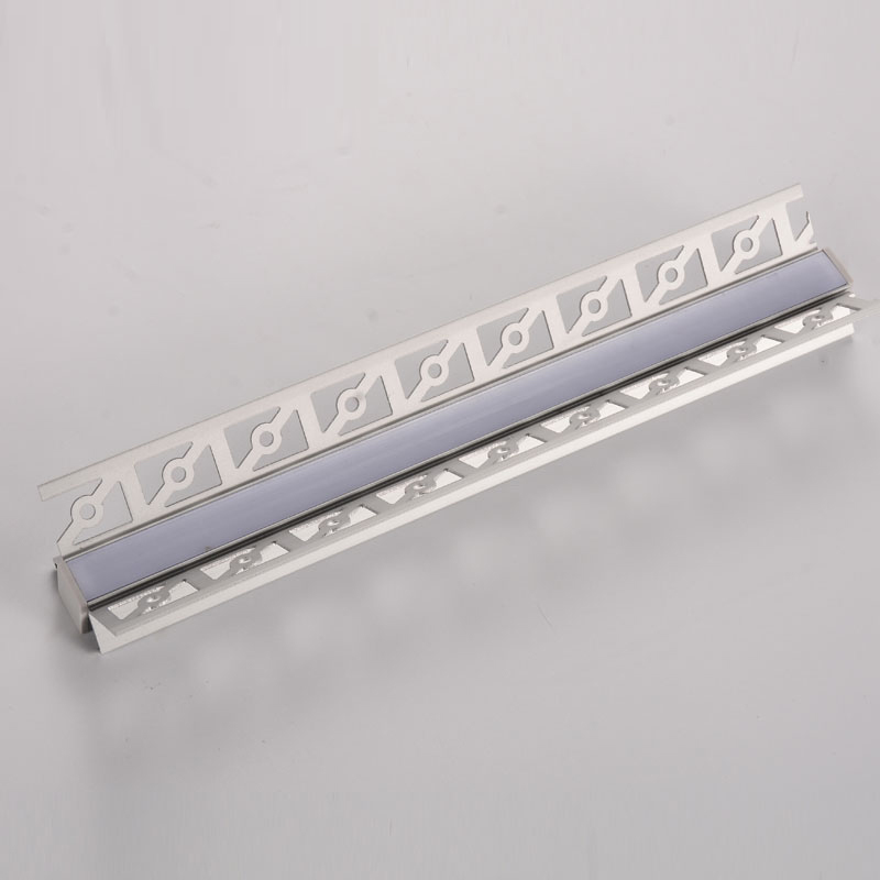 Кутовий алюмінієвий профіль (внутрішній кут) монтажу під шпаклівку шириною 40мм для декоративного підсвічування для LED стрічки завширшки не більше 8 мм. Розсіює світло на 120град. Йде в комплекті з екраном Opal, 2-мя заглушками і кріпильними ел-ми на 1м. Загальна довжина профілю 4м.