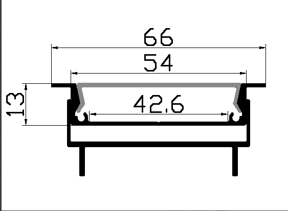 Алюмінієвий Профіль вбудований Із фланцем шириною 66мм для декоративного підсвічування для LED стрічки завширшки НЕ более 42мм. Розсіює світло на 120град. Йде в комплекті з екранах Opal, 2-мя заглушками и кріпільнімі їв-ми на 1м. Загальна довжина профілю 3м.