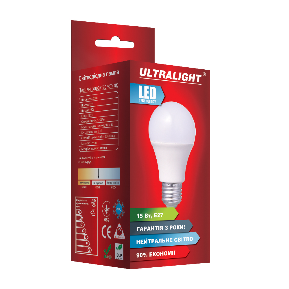 Технічні характеристики LED UL A70-15W-N E27