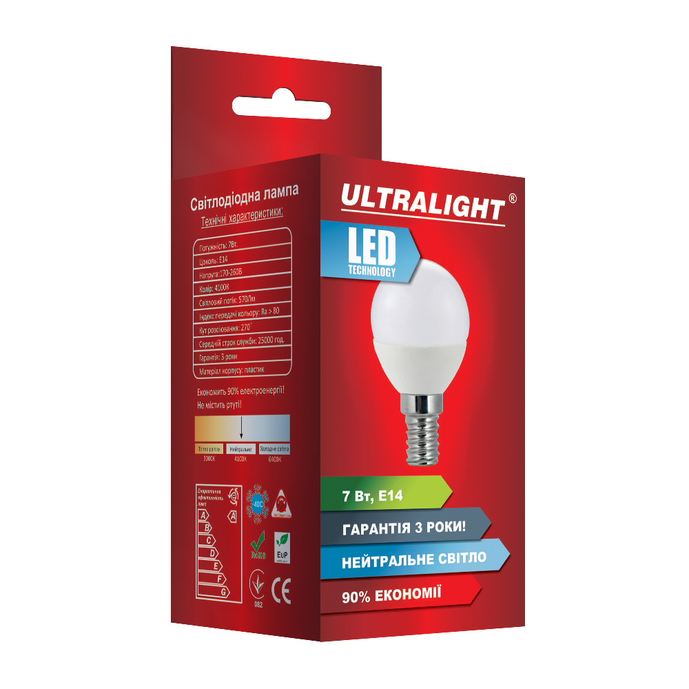 Технічні характеристики LED UL P45-7W-N E14