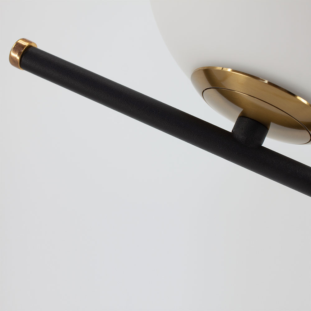 Оригінальна, трендова і актуальна серія настільних світильників BL 1301-1P і BL 1302-1P. Вони виконані зі скла і металу, а їх конструкція складається з тонкої металевої чорної труби, яка в свою чергу пофарбована в чорний матовий колір і закрита матовим білим плафоном. Вимикач знаходиться на дроті. Також передбачено використання однієї лампочки з цоколем E14 або Е27.